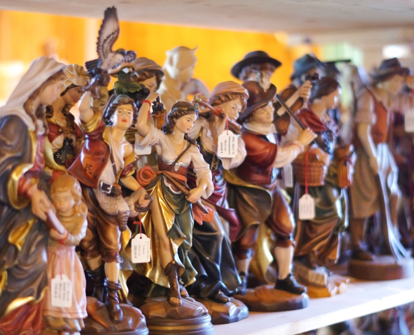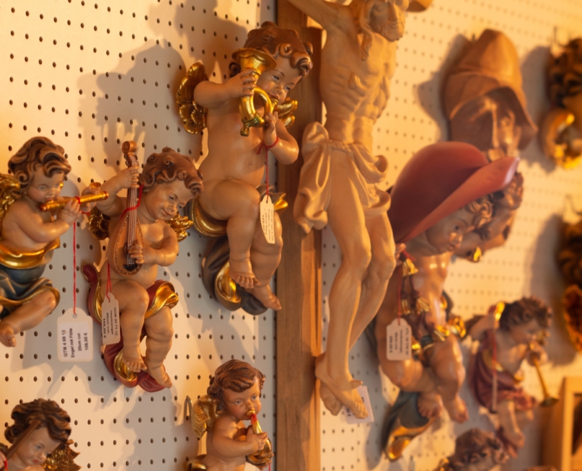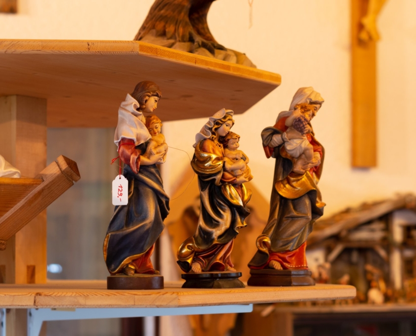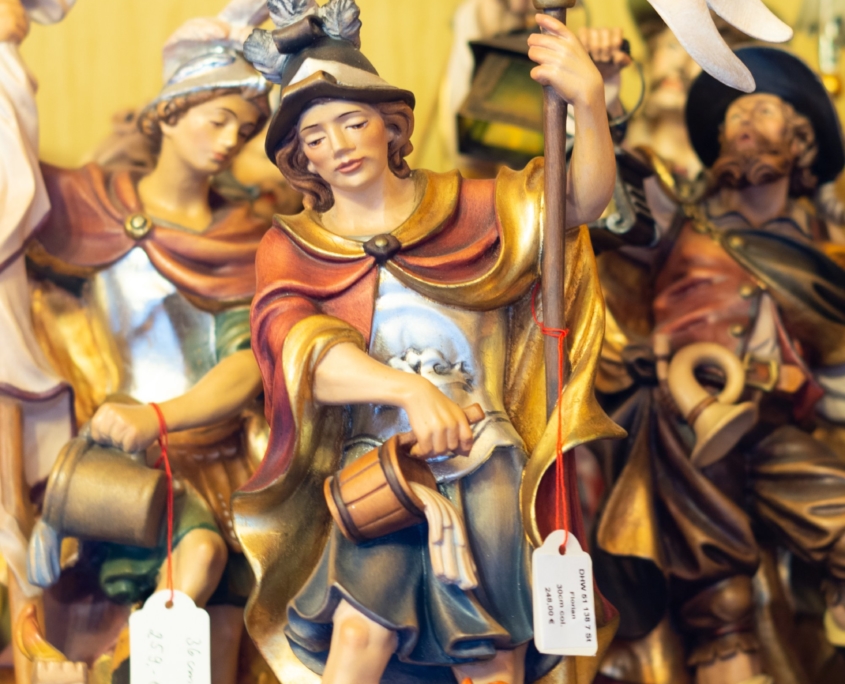 Originale Holzschnitzfiguren wie den Hl. Florian oder den Hl. Hubertus, Madonnen und Namensheilige als Schutzpatrone. Auch Kreuze und Profane Figuren und Tiere gehören zu unserem Sortiment.